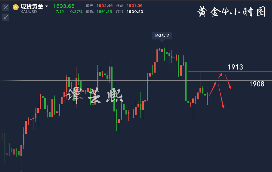谭芸熙:黄金1905收复不成下方看1850,你的多单还好吗? 投资要的不是盈利时的狂欢,而是在失败时的理智,不骄不躁放平心态才能微笑着走到最后。希望你们在这个市场能少走一点弯路,少错一单。即使我苦口婆心,但是投资的路还是要自己走,学无止境,学到了经验才是你的财富。下面谭芸熙来给大家讲讲晚盘的操作布局: 日内黄金探底回升,但仍承压于1900美元关口下方,短线4小时走势上价格在下轨连续刺破,早间更是快速触底反弹,当前4小时出现长下影线,不排除探底1880附近作为反弹底部,KDJ三线拐头,MACD死叉,但是动能柱开始缩减,早间破位前凌晨高点,预测日间至欧盘不会有较大的跌幅, 更多是关注反弹的力度,