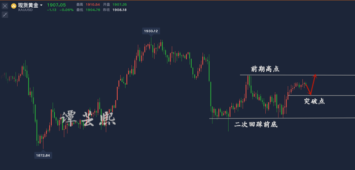 谭芸熙:黄金震荡多空利润双收,今日周线收官多空方向将见分晓! 黄金方面,谭芸熙认为日内黄金走了一个小区间震荡,但美盘后峰时段突破,价格小阳收盘,站在1900上方,且凌晨抗跌延续。 而在昨日行情中,几个典型的点需要注意: 1、早间依然是探底回升循环,早间先行下跌,这是本周连续出现的循环技术点,而测试前一日618支撑后反弹,再度回到起涨点。 2、欧盘虽然有下跌,但却没有下破早间低点,刺破后继续探底回升。而这个过程小时线单阴,多少偏离弱势的局面。 弱势中,要注意两点,一个是欧盘有效下破早间起涨点,另外一个是小时线呈现连阴格局。 3、5-8点虽然也有循环上升,但却是反复走势,价格美盘继续测试日内低点