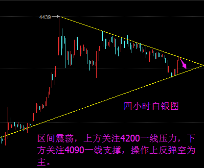 高氏论银:7.19油银天然气今日内操作策略分析 美原油技术分析: 日图结构,昨日阴柱收盘,虽然昨日开盘在高位,给人一种三连阳多头反转的走势,但是在高位震荡后是一路走低,一如昨日文章中所说台阶通道下跌维持完好。各项指标呈空头下行趋势,5日、10日均线在油价上方形成有效压制。短线图进入台阶底部反弹回升修复阶段,