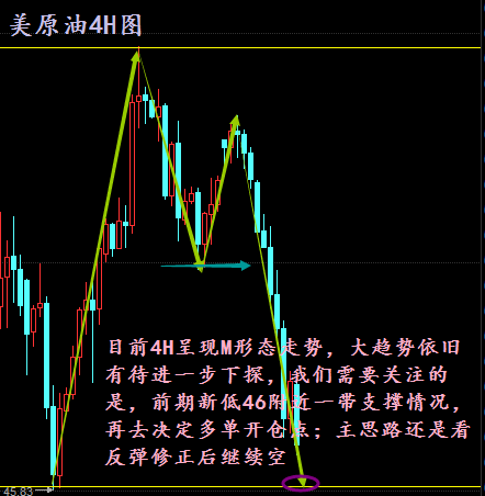 高氏论银:7.14金银回落逼近支撑线,油然气持续空 原油、天然气、白银技术解析: 原油先来回顾昨日行情,昨天开线位置大概是46.58整天持续走空,美盘EIA数据大幅利空后,指数再创日内新低44.55位置,最后日线收线在45美元关口;目前原油从4H图来看趋势我们依然是以反弹空为主,上方阻力在ma5于ma10均线交叉位置45.46,MACD