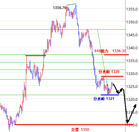 柴保锦:黄金来回过山车恐将加深调整 原油企稳5日线继续冲高 黄金本周连续的横盘后在昨日终于迎来下破,盘中冲高1328承压回落,下方接连跌破1323及1320关键支撑,在经历长时间震荡后,日线在连续的十字K整理后接着中阴下跌,日线形成中继回调,配合周线此前的上影线,本周继续收阴的话,短线恐将调整拐头,回踩空间会进一步加深,同时小时图随着高点向下移,刷新新低点之后,短线空头震荡下行。 而日内的走势来说,黄金来回过山车,短线上有洗盘的迹象,在欧盘回踩1318一线反弹,小时线连阳上升收复失地,小时线没有修正,我们在晚间也是冲高回落看待,但是在初请数据利多之后,四季度GDP表现好于预期,黄金再次承压走