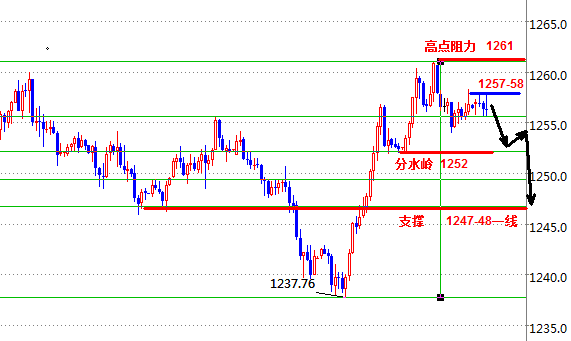柴保锦:黄金日线连阳不是反转 依旧看震荡下跌 本周五将公布的非农就业报告对金价的走势也至关重要,若就业数据乐观及薪资增长加速,将意味着美联储收紧货币政策的步伐加快,黄金将会受到打压,涨势难以延续。目前黄金虽因美元的走弱有短暂的反弹,但如果得不到有力的支撑,反弹也只会是昙花一现。 黄金昨日受美国独立日假期影响,美盘波幅受限,黄金昨日探高后承压回落震荡,日线收出上引线,昨日我们在1260-61布局了空单,因为昨天行情是早间大幅拉升,当时就强调了往往早上上涨的行情延续性,同时1260-61一线是前开跌口的位置,也是从1272下跌到1238反抽的618位置。而这两天的黄金被问到最多的还是黄金是不是已