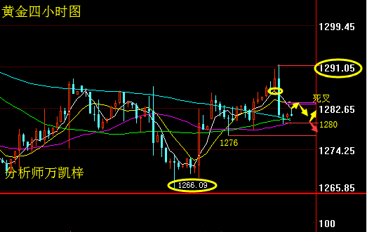 美指,强势刷新高至97.79一线,黄金则继续下探迎新低至1266美元一线,多头高涨的美指令处于弱势的黄金反弹无力,承压下行向下蔓延。因金融市场在复活节假期后重开,且交易商在周五美国公布首季国内生产总值(GDP)数据前青睐美元。全球股市的表现使得黄金承压,避险情绪依然低迷,原油市场的走强无法有利支撑金价,美联储降息可能性降低,美元走强,且投资者寻求风险较高资产,打压黄金的吸引力。目前金价震荡交投于1270美元一带,短期将继续维持弱势整理。 黄金技术分析: 黄金,弱势盘整之后,最终还是继续下行,下方触及1266美元一带之后小幅反弹收复跌幅,收于1272美元一带,目前继续于1270美元一带