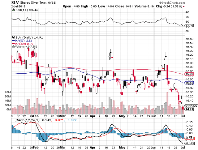 本周贵金属市场继续走低,白银价格刷新去年7月10日以来的最低水平,触及15.79美元/盎司低点。 6月白银的回升虽然突破了50日和200日均线,但仍然只是假象,之后仍然是转而下跌。 从6月14日银价触及17.32美元/盎司高点至今,已经跌去了超8%。 一旦白银回升到均线上方,投资者们可能仍然会选择抛售。在整个白银市场趋势已经改变的情况下,要让投资者由空转多将是非常困难的。 对贵金属来说,其典型的中期周期会有2到3个日度周期,在这些周期中,“半周期低点”是比周期中更好的获利了结机会。 如果本周白银形成中期周期,那么几周之后就将出现半周期低点。 笔者认为,即将出现的这个低点应该是投资者们大幅买入
