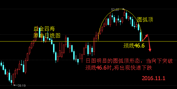 益金四海:10.31钻井数不断增加,油市空头情绪弥漫火药味 周一(10月31日)原油盘初,油价延续跌势,震荡下行。美油交投于48.47美元/桶附近,跌幅约为0.47%;布油交投于50.43美元/桶附近,跌幅约为0.49%。上周末OPEC与非OPEC未能就产量限额达成最终协议,令油价承压。虽然美国石油钻井总数上周录得小幅下降,但是,总体来看,