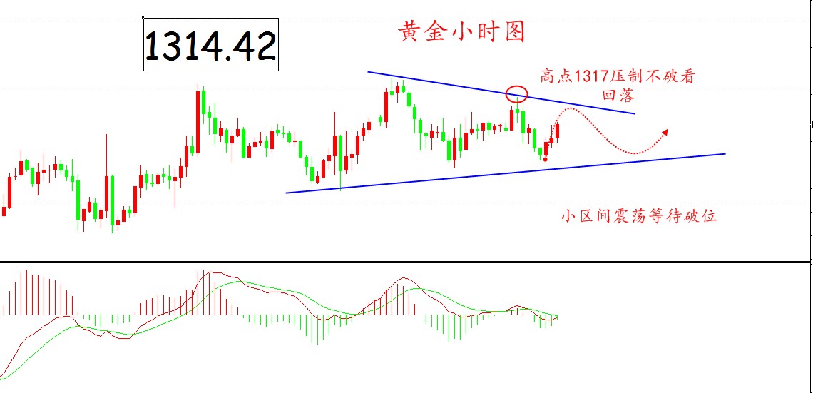 吕福熙:黄金再陷震荡交投清淡,等待市场指引寻求破位 非农过后行情开始趋于平静,就像一潭死水,荡不起大的波浪,昨日行情最低下探至1310美元处后未能有效突破开始震荡上行,随后在1315美元处止步,整个波动区间只有5美金,日内亚市早盘开盘后,黄金维持昨日态势,继续开始上行,来到了1316美元处,随后的回落也是较为迅猛