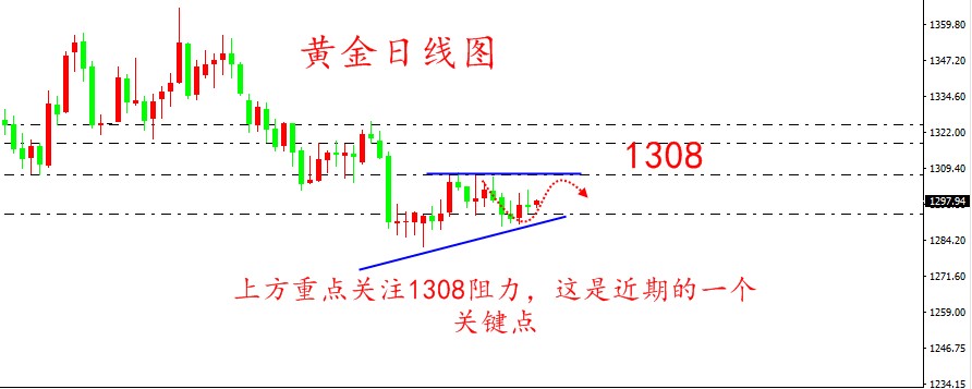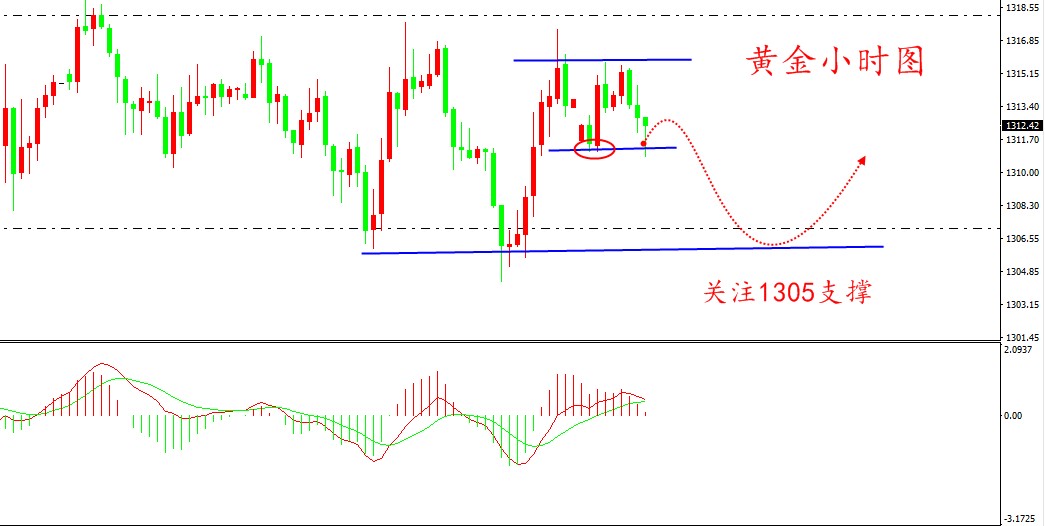 行情来了,最重要的知道如何去应对,首先分析下昨日黄金的走势,黄金开盘后在1314美元处盘整,可惜我们给出的1316美元处的空单未能顺利触及,直接下行,但是思路是对的,随后于1306美元处布局多单,这个是前期的支撑位,破位后行情会顺利下行,不破位依托该位置反弹,这也是福熙布局多单的原因,最后真没办法,美指的强势反
