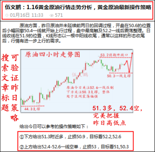在做黄金外汇投资的过程中,不要用自己的主观看法去判断可观的行情,有时行情不一定会顺着我们想要去的方向或者认为是理所当然的方向去发展,如果真的是这样那谁都可以去投资,谁都能够赚钱了。当然谁来到这个市场都是为了赚钱,但往往有人在实盘操作的时候就忘记这个道理,不理性对待,尤其碰到幅度较小的行情的时候有点风吹草动便调整思路,这就是长时间盯盘迷失方向,让自己看不清造成的,多让自己做一个旁观者,多花时间去分析研究,一旦执行操作之后让自己从行情和盘面中抽身出来,去等待结果和验证自己的预判。 ——1.17黄金,原油晚间操作策略 目前黄金,原油双双陷入区间震荡,面对这样的行情,着实有些索然无味,昨日黄金波幅不