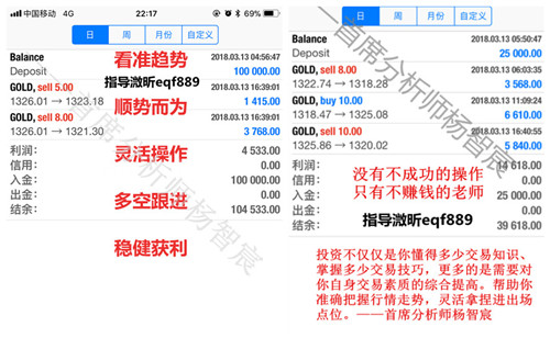 每个人面对非农数据都将有不同的表现,有的人一路抗到底损失惨重,有的人小赚大亏。智宸老师想说的是没有一条路走到黑的行情,更没有一直亏损的投资,行情反反复复,操作亏亏赚赚,没人赚得彻底的,都是摸滚打爬,稳稳当当,步步为营的结果。在这个良莠不齐的市场,亏损的人不少,但是或多或少都存在交易中的大问题,无论是