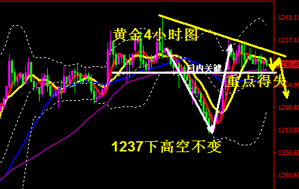 蒋妍琋:黄金整体看涨不变 短线1237下先看回撤修正 黄金上周初直接承压1235开始下跌,日K线录得三连阴,连续失守1230/1220关口,低至1212美元一线,然而在周四当天,受美指大幅回撤,黄金当天再次拉升逾20美元,重回1230上方,高至1237美元,前三天的跌幅,一天就收复,出现一阳吞三阴的局面,周五小幅收跌,美市盘中最低下探至1229.44美元/盎司,金价在触及日内低位后随即出现V型反弹,仍持稳在1230关口上方。周五公布的美国非农等经济数据较为强劲,提振美元。数据显示,美国10月非农就业增加25万人,远超预期的18.8万人,失业率也企稳在3.7%,续刷1969年12月以来最低水平