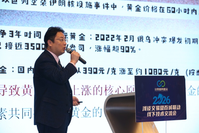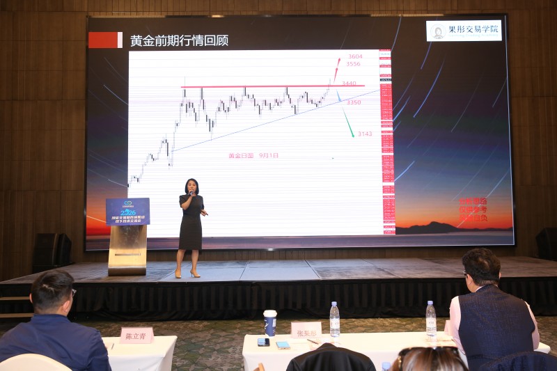 之后,分享嘉宾——西安汇轩企业文化传播有限公司总经理、国内知名金融分析师、CCTV证券频道特邀分析师张果彤老师,带来《技术解密黄金后市的跌宕起伏》实战干货。她立足当前黄金剧烈震荡行情,从K线结构、关键支撑压力、趋势通道、量能信号、拐点判断五大维度,层层拆解黄金涨跌背后的技术逻辑。并演示如何通过技术形态识别顶部风险、底部反转与中继震荡,明确给出入场、止损、加仓、止盈的实战标准。她强调,黄金行情跌宕起伏,但绝非无序波动,真正的交易靠的是图形、节奏、纪律与系统。让现场交易者真正学会“用技术看懂趋势、用信号把握机会”。