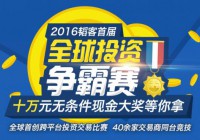 “2016韬客首届全球投资争霸赛”是由韬客社区首创的全球跨平台投资交易比赛,本次大赛汇集40余家各国不同监管的交易商同台竞技,为大家提供一个相互促进、共同提高的平台。