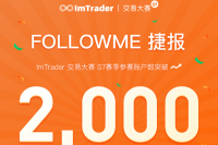 FOLLOWME 联合 FX168财经集团、FX112财经网、友财网、赛雷头条、汇商那点事共同举办的 imTrader 交易大赛 S7 赛季已开赛半月,参赛账户数逾 2,400+,参赛资金破 2,000 万美元,奖金池破31万元,获得又一里程碑式的突破。