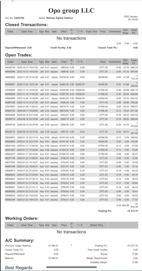 自 2022 年 2 月至 3 月以来,我一直与该经纪人合作。我们非常好,顾问给了我开设非常有利的头寸的指示,我能够进行少量提款,然后 4 月份的情况变得非常糟糕,我们有不利的未平仓头寸并且账户的保证金很低,经纪人要求我增加投资,他告诉我,对于我存入的每一美元,他们都会给我相同数量的营业奖金,这对我来说似乎很棒,我们重新开始,我们让账户增长,在 6 月份,我要求提取 3 万美元,经纪人告诉我他同意了,但他会管理它,他需要时间,因为这是一笔不小的数目钱,然后他告诉我必须额外存入 4 千美元,我存入了存款,到 6 月底帐户被关闭,我要求的注册不再合适,我一无所有,经纪人变得咄咄逼人,威胁我,我开始向页面发送消息我从 fb 给他打电话,直到他接听并告诉我,如果我想取回我的钱,我必须存入更多的钱。