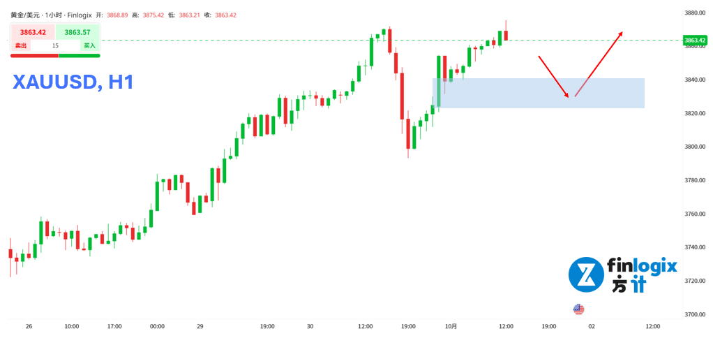技术面:金价在亚洲时段可能出现小幅回调,但若美国****停摆导致周五非农数据暂停公布,今晚的 ADP 小非农数据将格外关键。若结果延续劳动力市场放缓趋势,则年内降息概率将进一步升高,从而成为推动金价续涨的催化剂。操作上,若日内金价在 3825–3835 美元区间回踩企稳,可考虑做多。