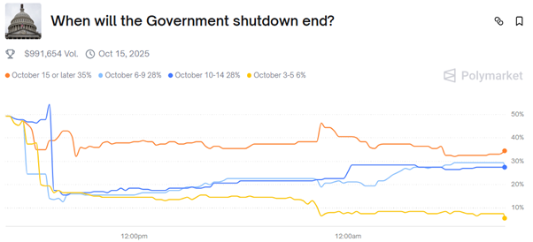 ****网站 Polymarket 的预测显示,美国****关门可能持续长达两周。这意味着不仅本周五的非农就业数据难以如期发布,甚至连月中的 CPI 通胀数据也可能延迟公布,使得美联储在本月底利率决议前将缺乏关键参考指标。