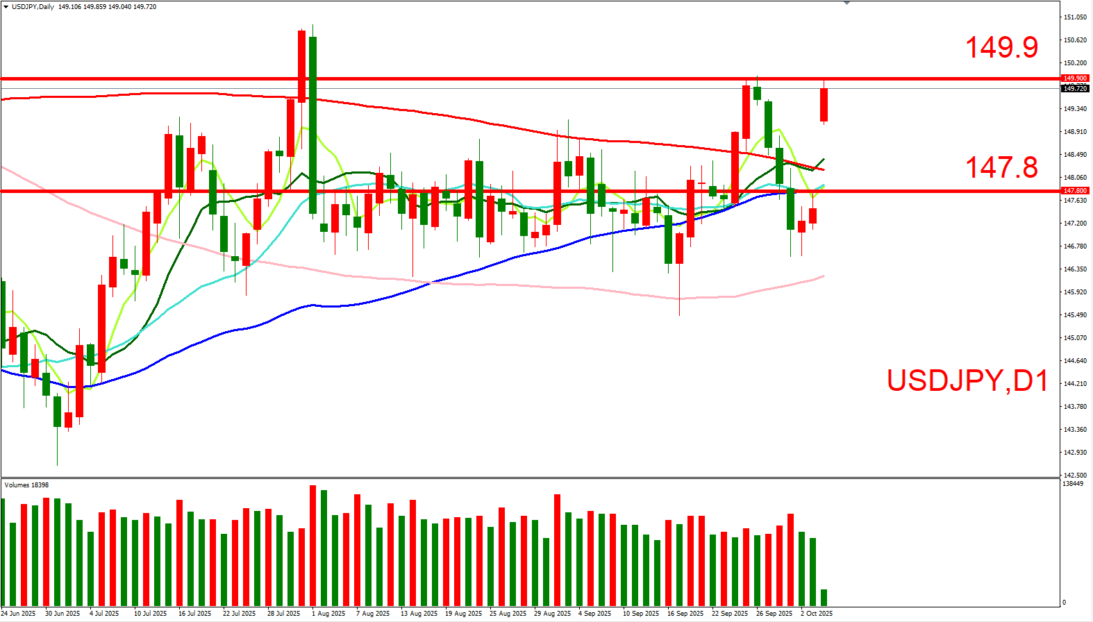 高市早苗当选日本新一任首相。由于他的财政政策偏向扩张性的鸽派政策,使得日本央行暂停加息的概率上升,极短线上使得日元在周一出现大举跳空行情。