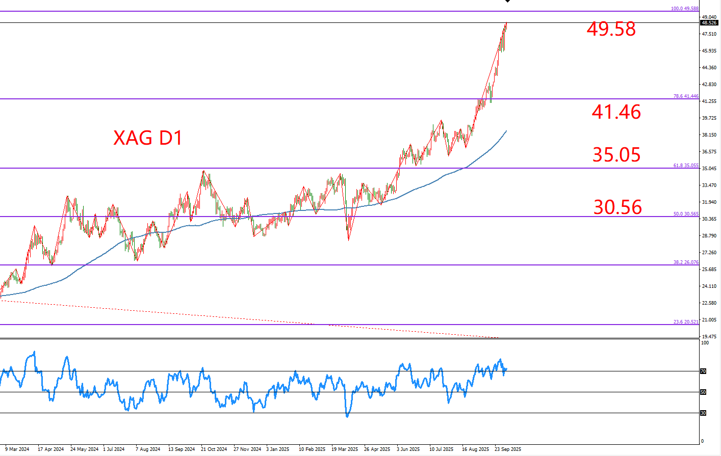 近期银价突破41.46关键阻力后整体行情延续上涨,就操作方面,短线避免规划空单,下一阻力关注49.58。