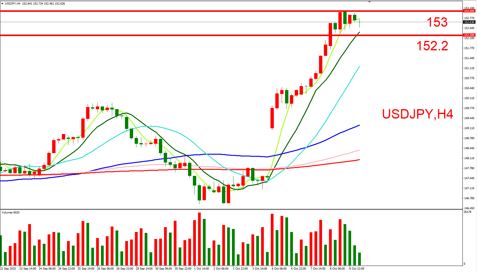 高市早苗于周末当选新任日本首相,周一美日兑跳空上涨反应其较为鸽派的政策。反应多久不好把握,因此短线走势先给予尊重,先偏向多头看待。短线上可以(153,10/09高位)与(152.2,10/09长红K大量低位)作为压力与支撑位来做参考。