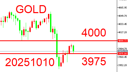 继昨天创新高后,金价在4000。附近徘徊,不会离此关键价位太远。