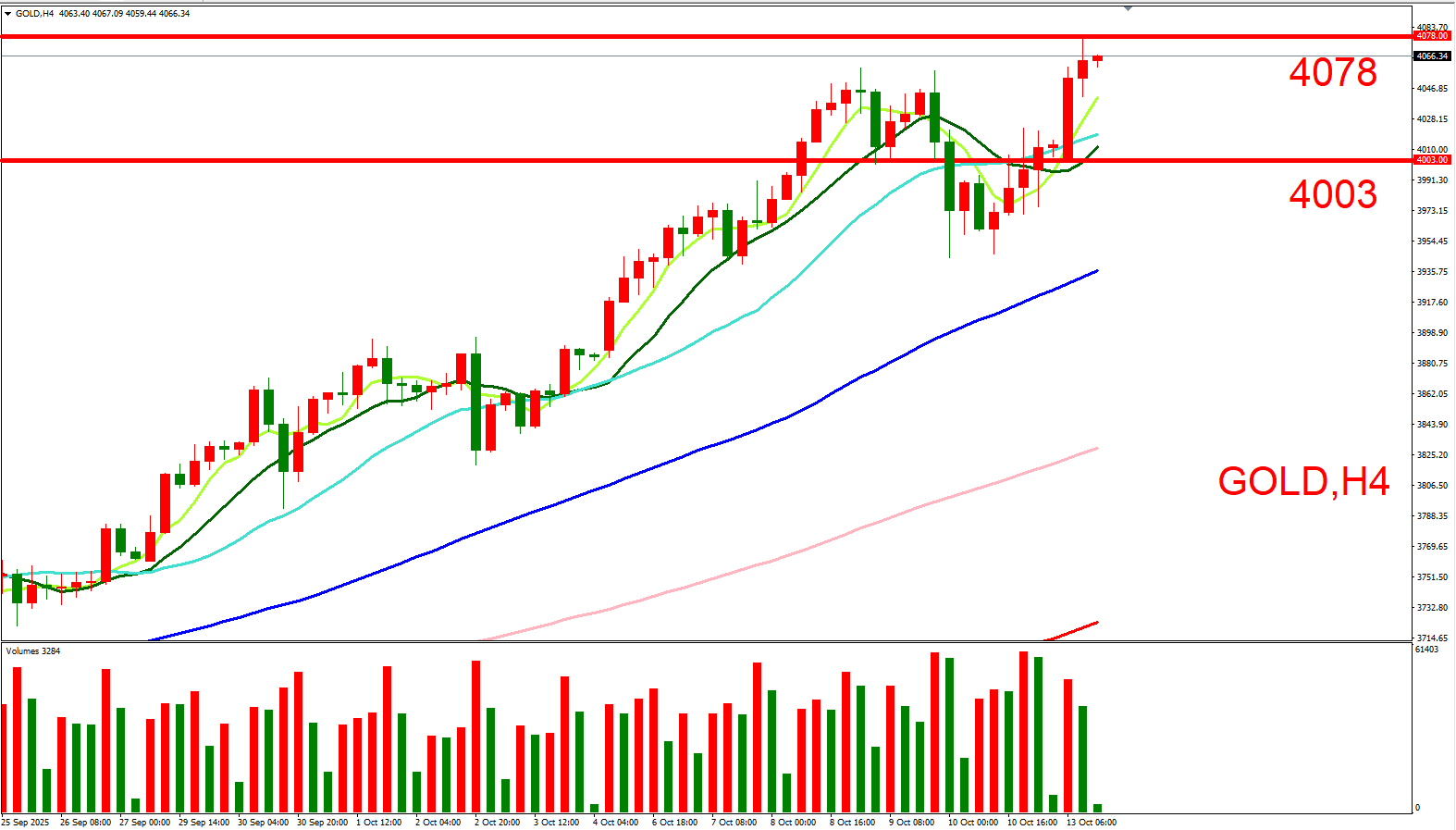 短线可以(4073,历史最高位)与(4003,10/13大量红K低位) 来作为压力与支撑位参考,用以判断低接或突破进场机会。