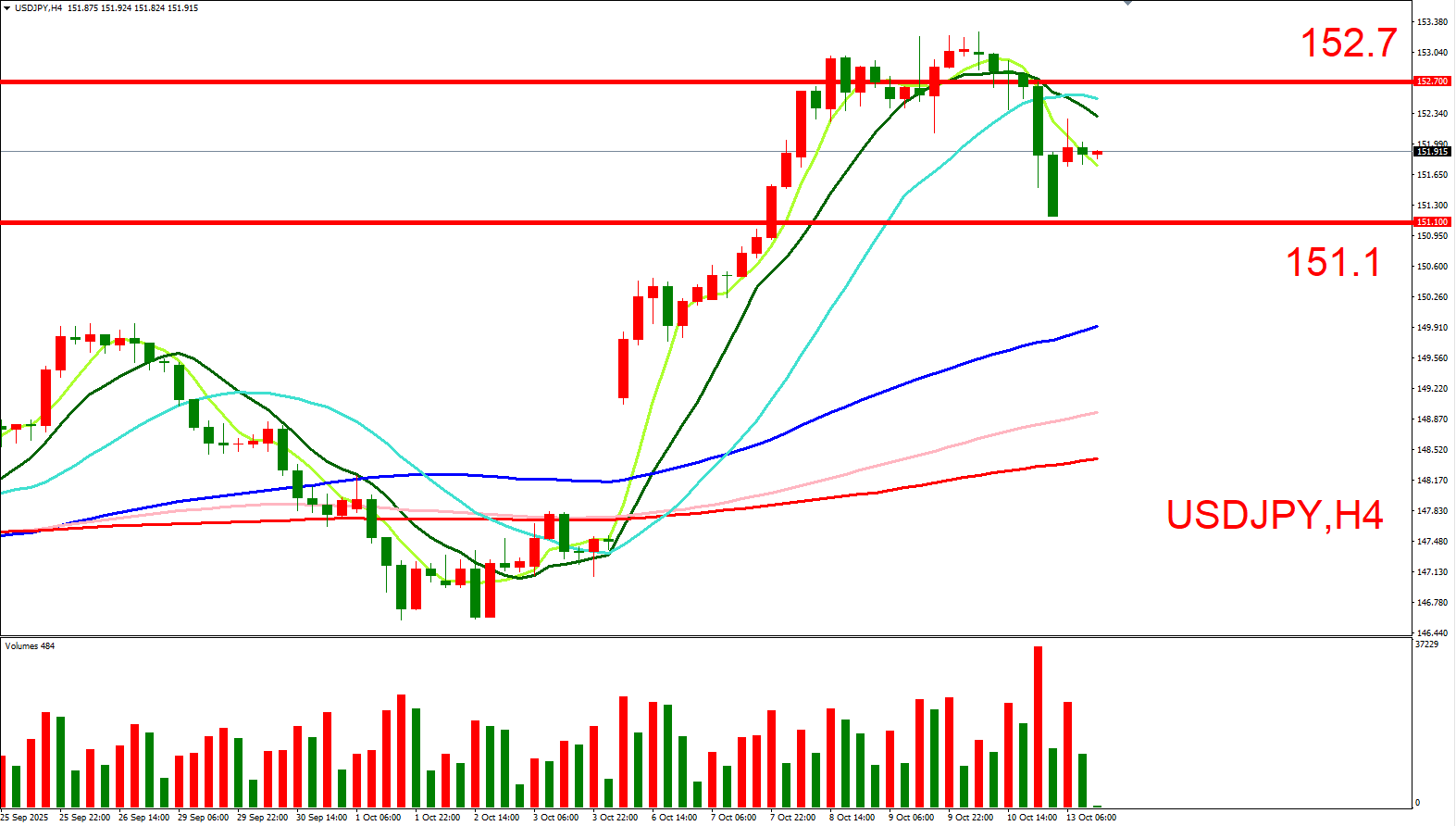 高市早苗当选新任日本首相,美日兑跳空上涨反应其较为鸽派的政策。今年日本央行加息预期幻灭,因此短线走势给予尊重,先偏向多头看待。短线上可以(152.7,10/10大量高位)与(151.1,10/11长黑K低位)作为压力与支撑位来做参考。