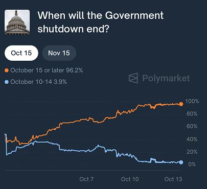 目前押注本周美****继续关门的概率高达96%,甚至有20%的人押注****会一直关门到11月中旬。但也就是说,不管是美元还是黄金都已经纳入****持续关门的预期,如果本周****恢复运营,则美元将短线保障,而金价将暴跌。
