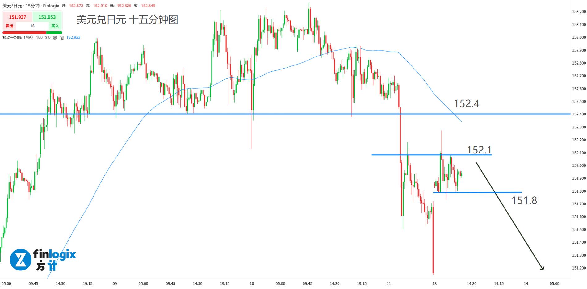 日内或短线交易策略:(趋势跟随)152-152.1逢高做空