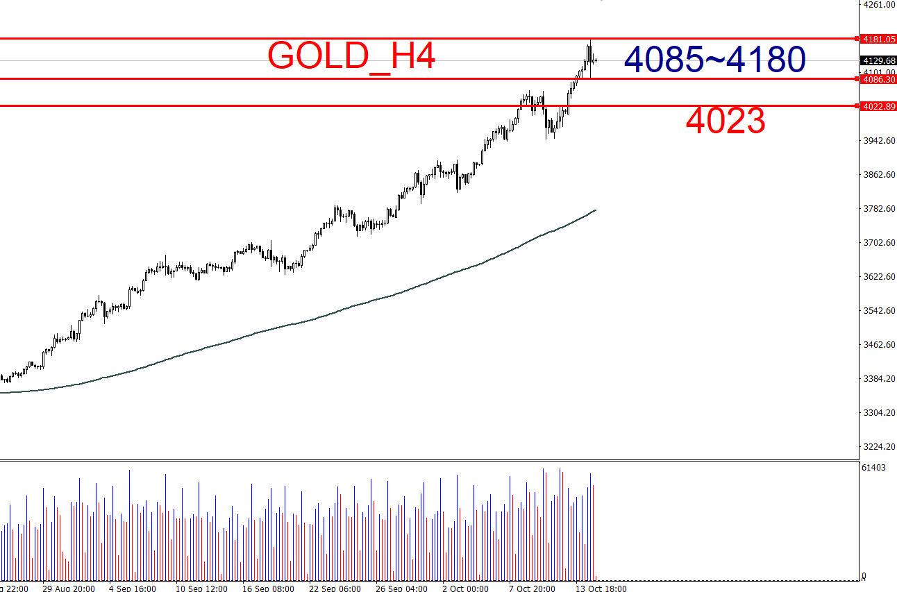 突破4180: 可尝试多单,目标看向更高点位(如4200或更高)。