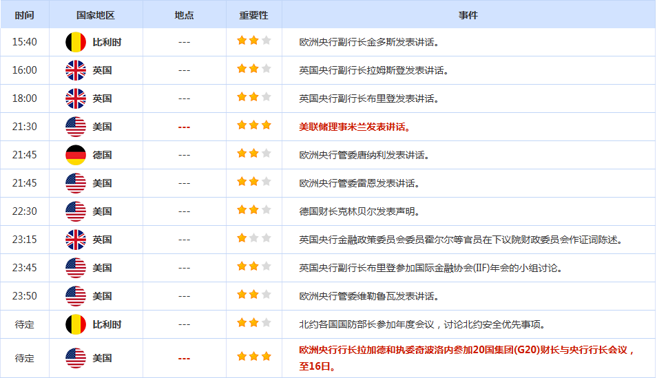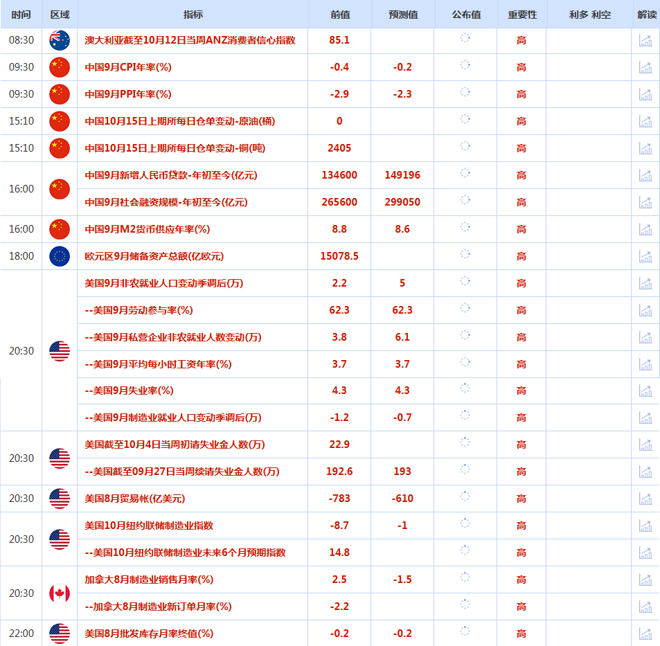 前日公布数据与消息: