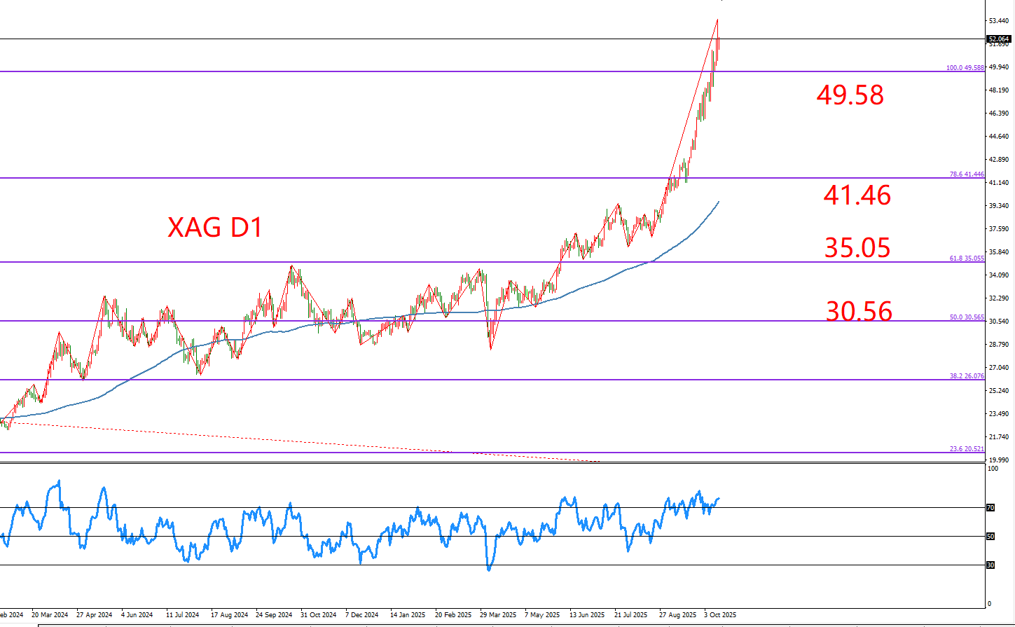 下方支撑:49.58 / 41.46 / 35.05 美元/盎司