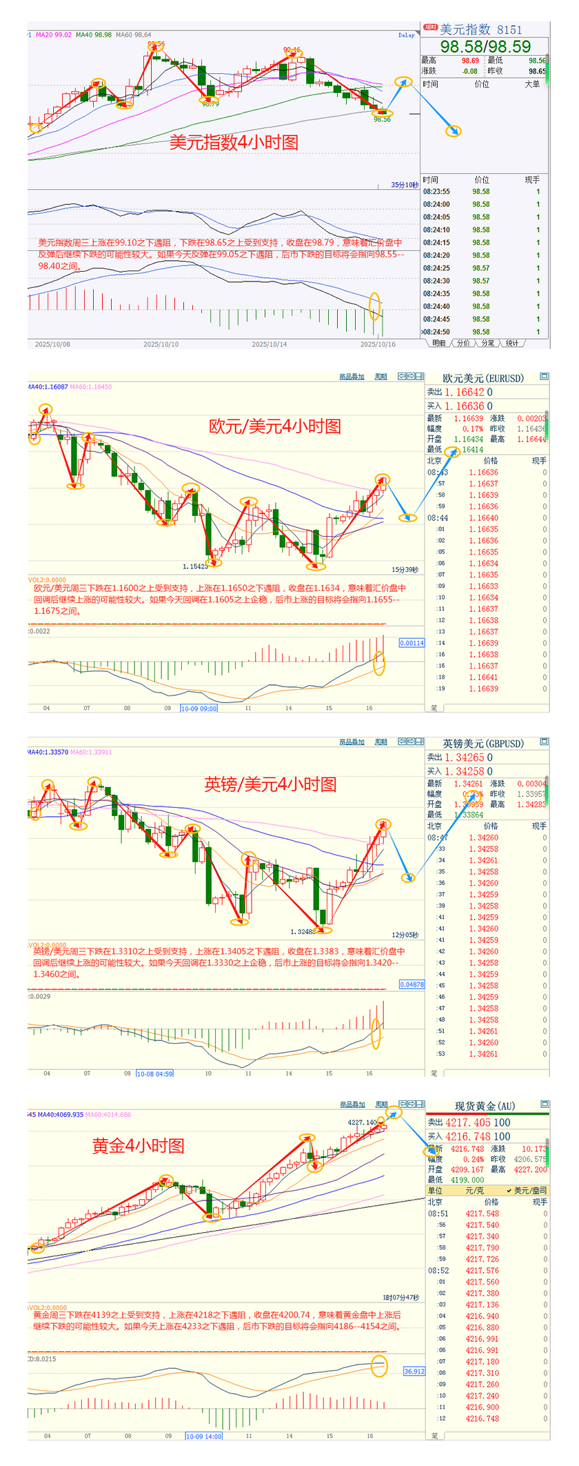 美指周三上涨在99.10之下遇阻,下跌在98.65之上受到支持,意味着美元短线上涨后有可能保持下跌的走势。如果美指今天上涨在99.05之下遇阻,后市下跌的目标将会指向98.55--98.40之间。今天美指短线阻力在99.00--99.05,短线重要阻力在99.25--99.30。今天美指短线支持在98.55--98.60,短线重要支持在98.40--98.45。