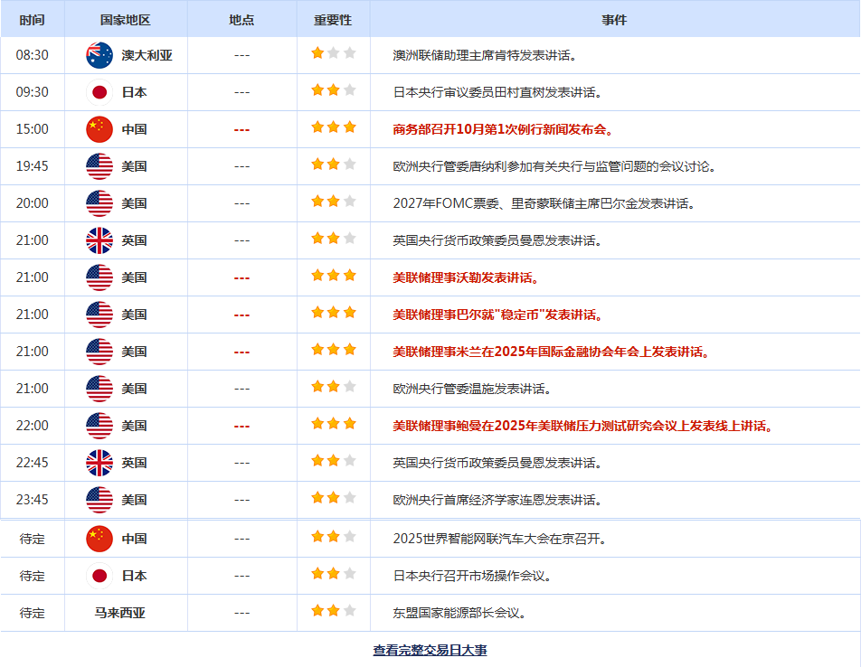 交易商预计 10 月份降息 25 个基点的可能性为 98%,随后对 12 月份再次降息的可能性定价为 100%。