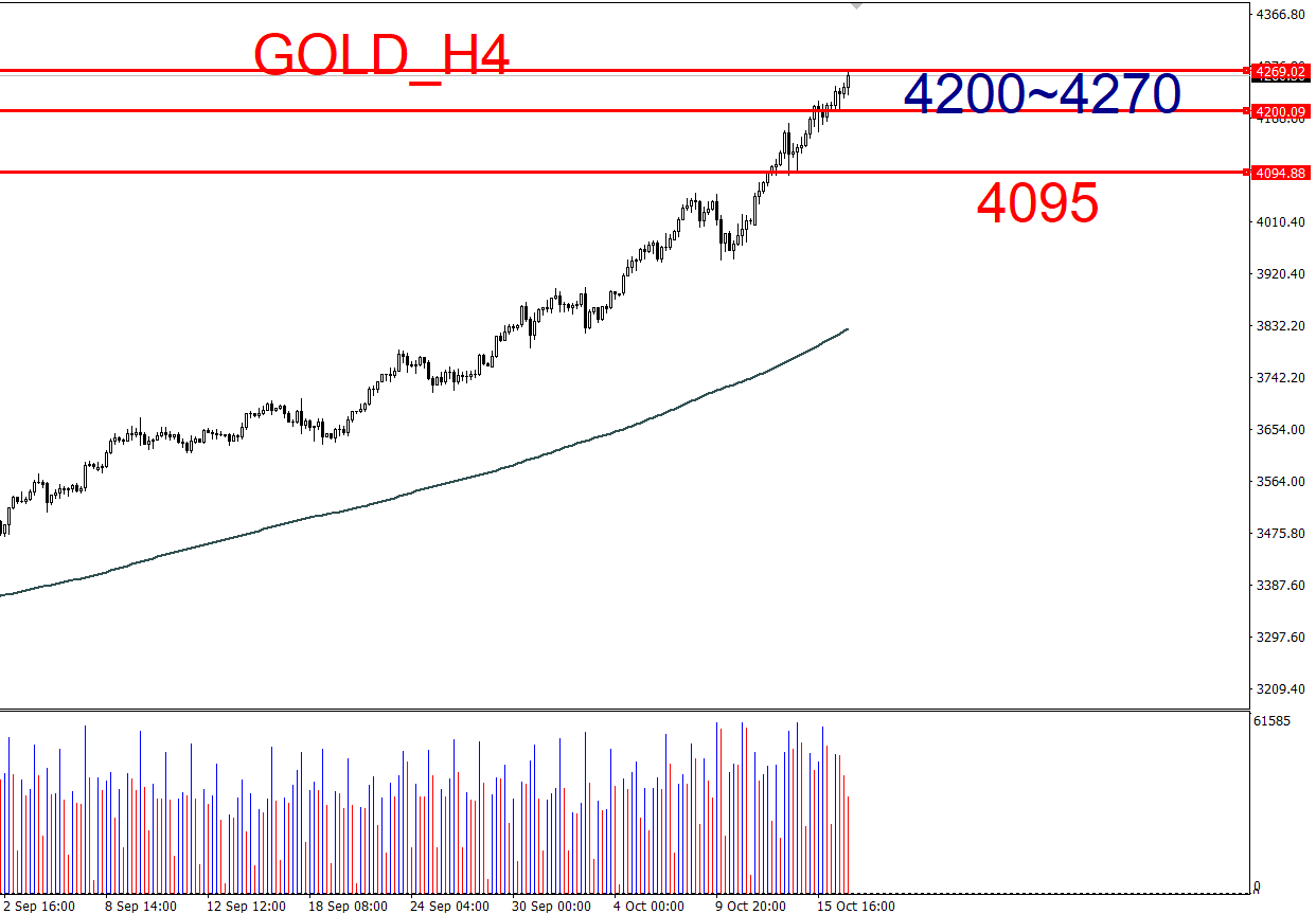 突破4270: 可尝试多单,目标看向更高点位(如4300或更高)。