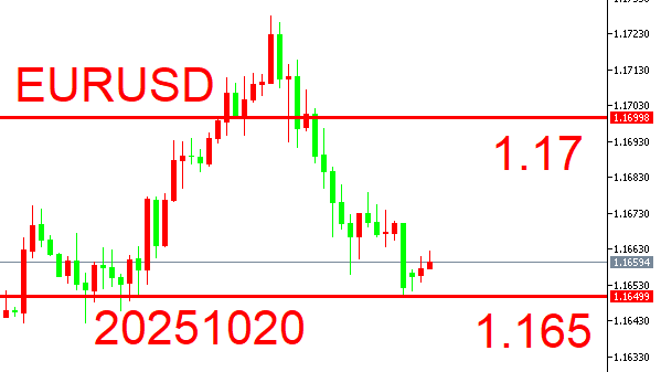 现在美元出现短暂的回升也拉低了欧元,但估计不会离1.17整数大关太远。