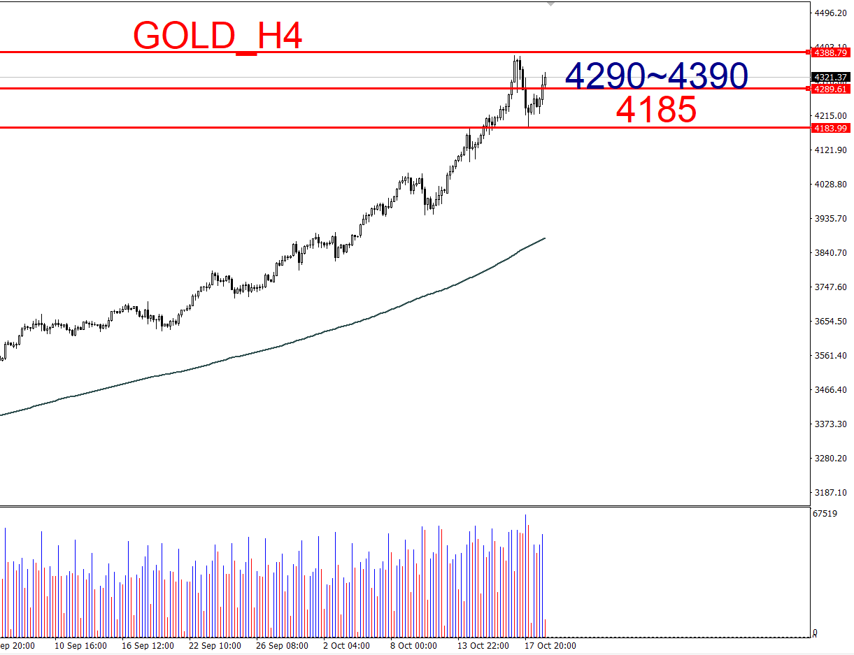 价格触及 4290并反弹: 可尝试多单,目标看向区间上沿(4390)。