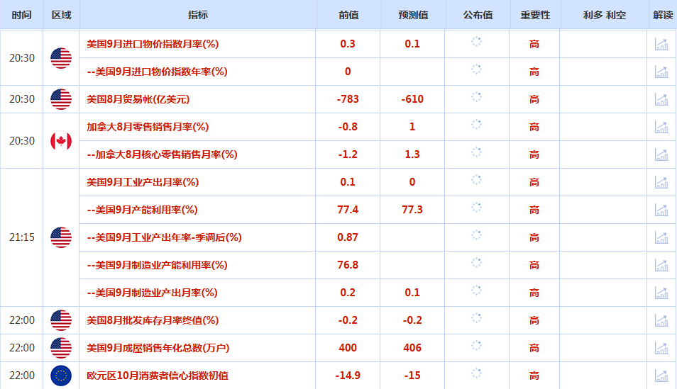 前日公布数据与消息: