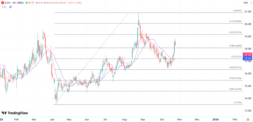 比如李宁入驻即时零售平台,对门店的拣货、打包效率和人员配置提出了更高要求。如果流程管理不当,可能会增加单店的运营成本。即时零售平台通常会收取一定的佣金,且促销活动可能更频繁,需要关注其对产品净利率的最终影响。李宁股价隔夜美股明显走高但今日港股走势未能跟进,刷新9月10日以来高位后回吐,如果日内收低于18港元,将面临跌至17.20港元的压力,届时关注日图主要均线形成的关键支撑。