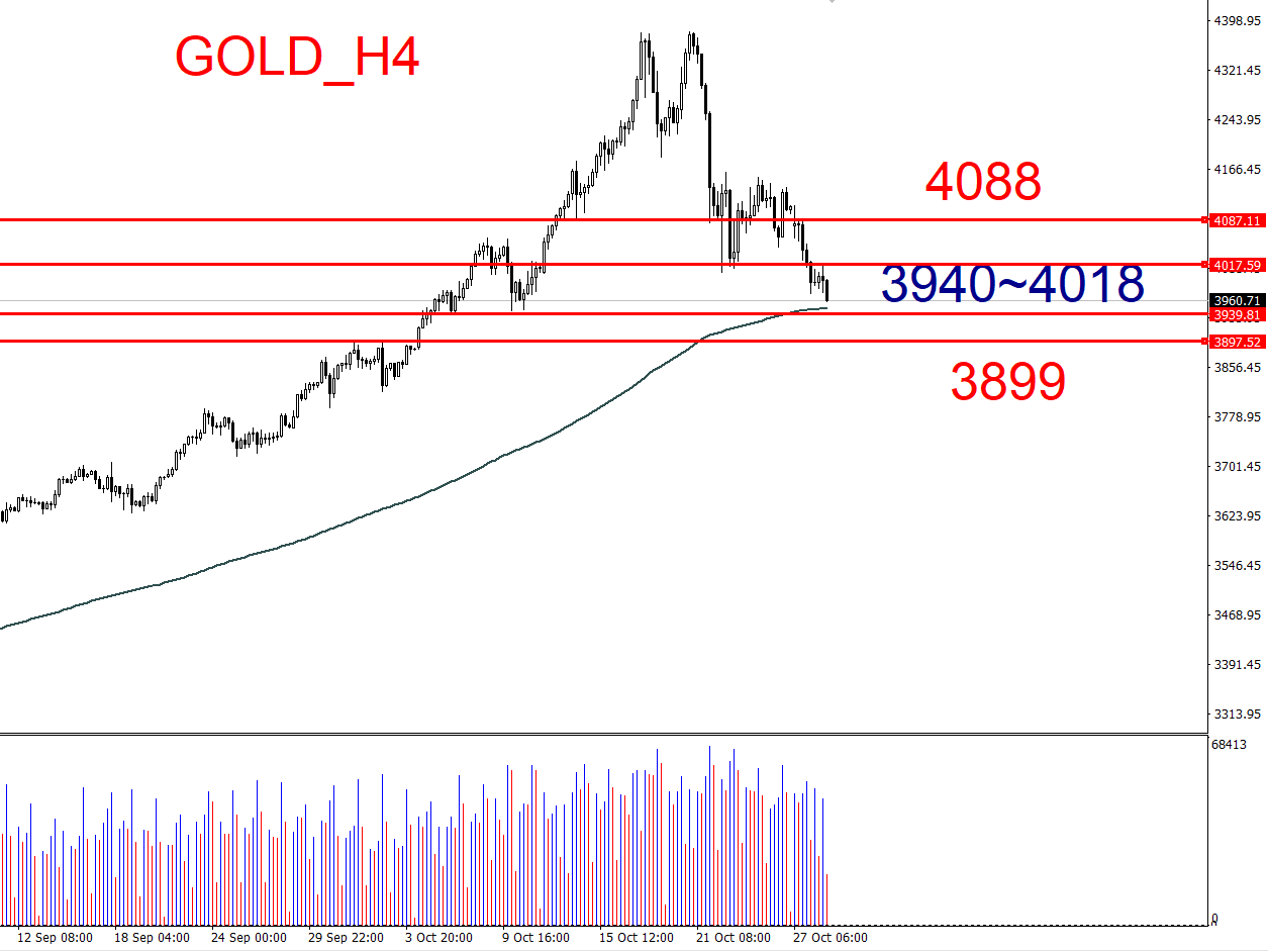 价格触及3940并反弹: 可尝试多单,目标看向区间上沿(4018)。