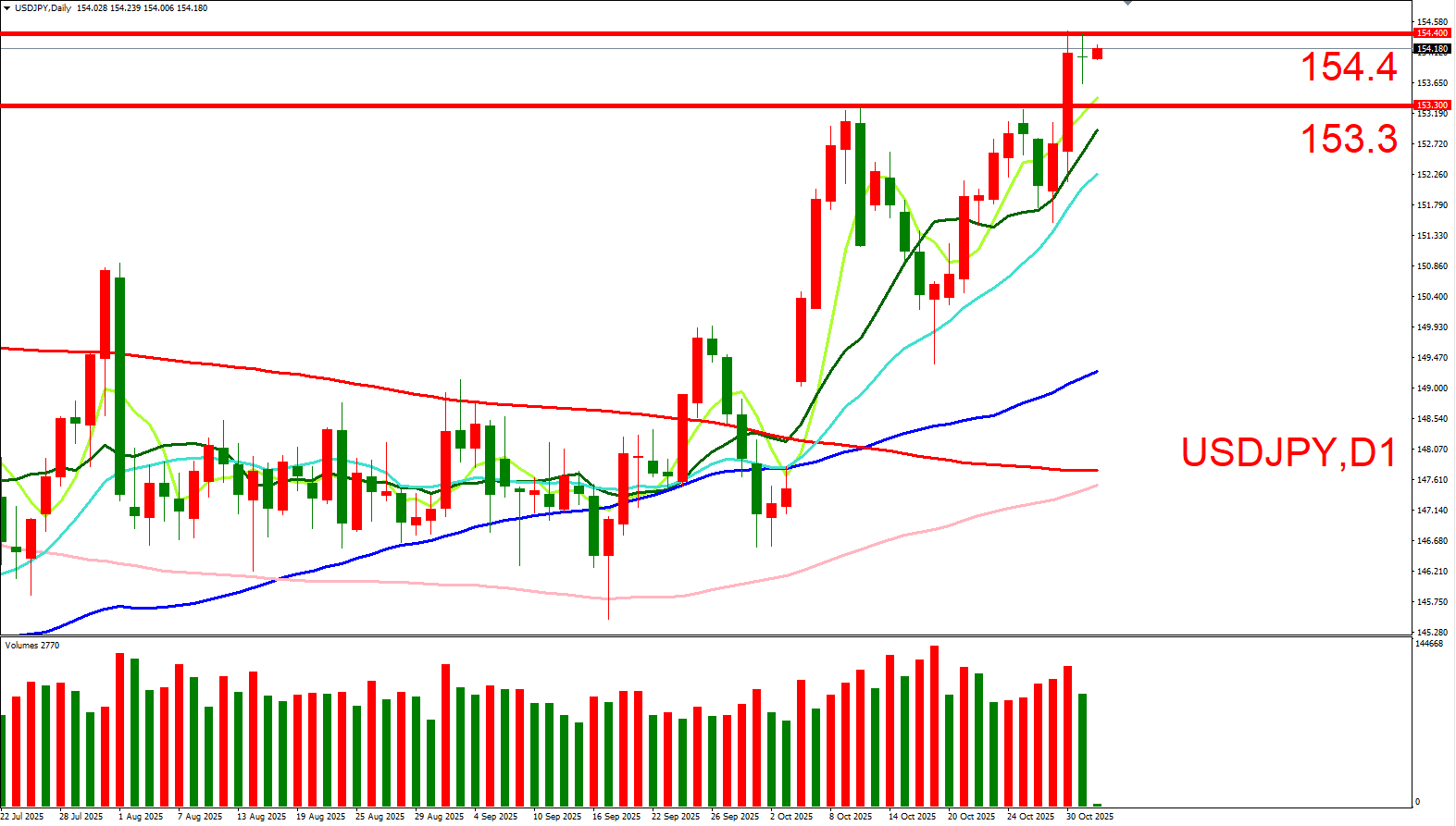 鲍威尔和美联储官员鸽派言论与美联储降息预期再次回归,加上高市早苗当选后的宽松政策利好预期,因此美日兑偏向多头看待。短线上可以(154.4,10/30高位)与(153.3,10/10前高)作为压力与支撑位来做参考。