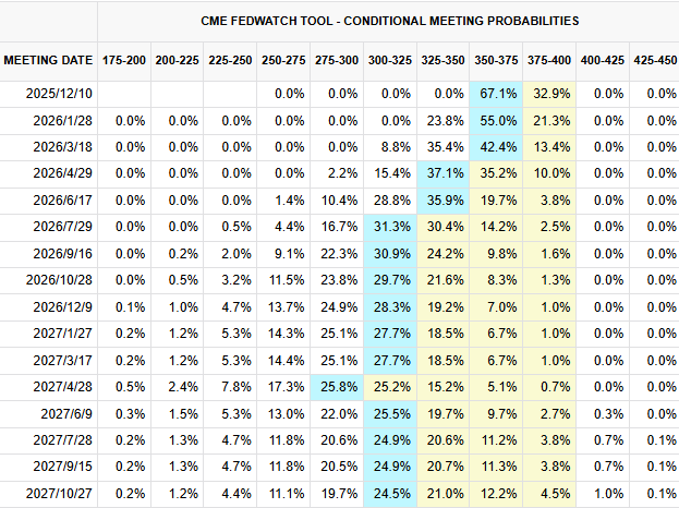 除了即将结束缩表之外,根据芝商所Fedwatch工具,就一级交易商数据指出,当前市场预估12月利率决议上有超过六成的可能性美联储将再次降息,将利率水平降至3.75-4%。今年4月,当美国总统特朗普宣布大规模加征关税时,经济学家们预测通胀将飙升,并提高了经济衰退的可能性。企业和消费者纷纷囤积商品,以应对价格上涨。如今看来,这些担忧似乎有些言过其实。美国劳工部的数据显示,关税开征前的进口价格并未大幅下跌,这表明外国供应商普遍没有通过降价来弥补关税的影响。