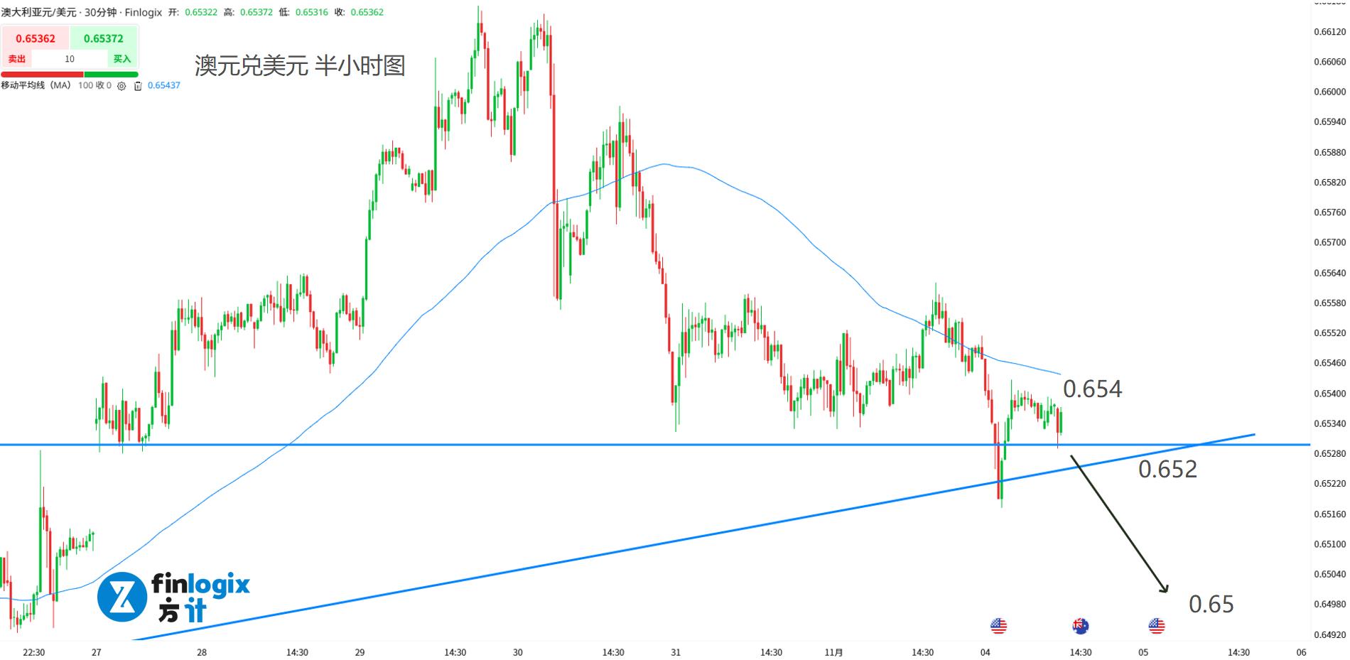 日内交易策略:(趋势跟随)跌破0.653或0.652跟随做空
