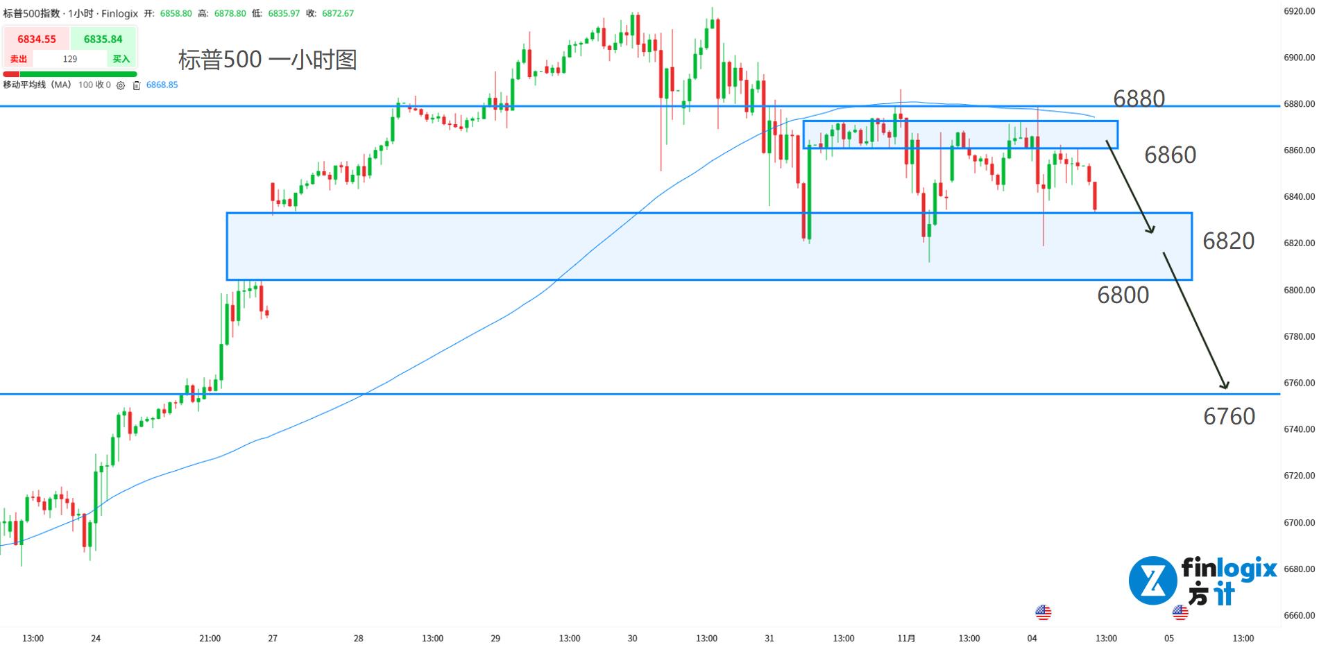 阻力参考:6860;6880(止损)