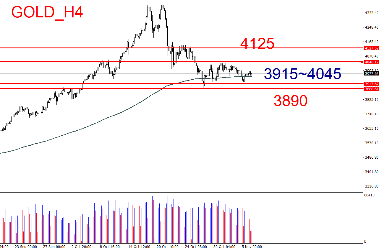 区间突破操作: 当前价格位于3915-4045区间,采取区间突破操作方式:
