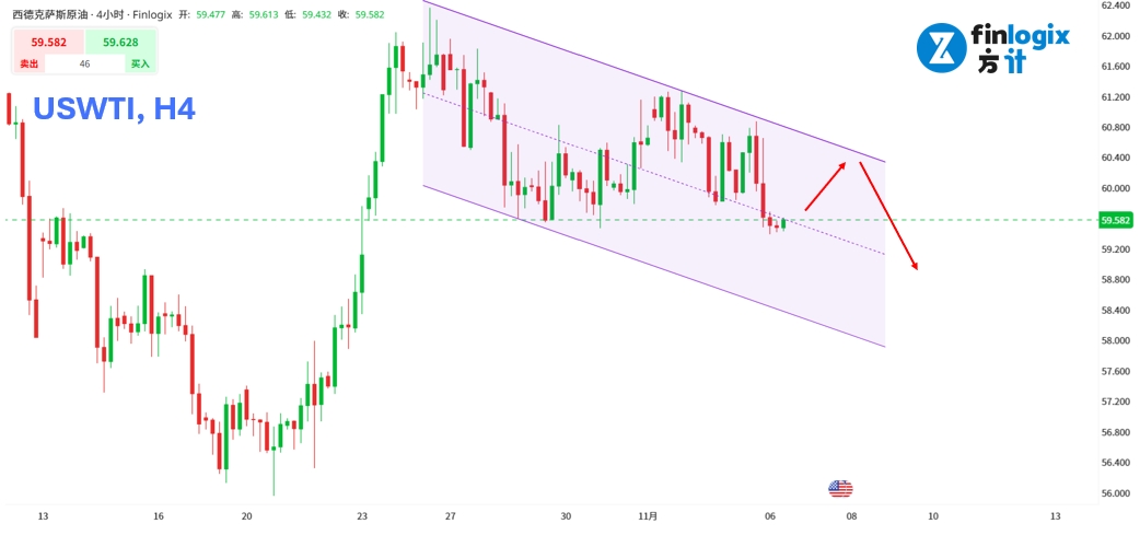 技术面:尽管上周末OPEC+会议确认持续增产,并预计在2026年第一季暂停增产,但市场反应冷淡,油价未获明显支撑,短线操作仍以逢高偏空为主。日内若出现反弹受阻,留意60~60.4关键阻力或有高位偏空机会。