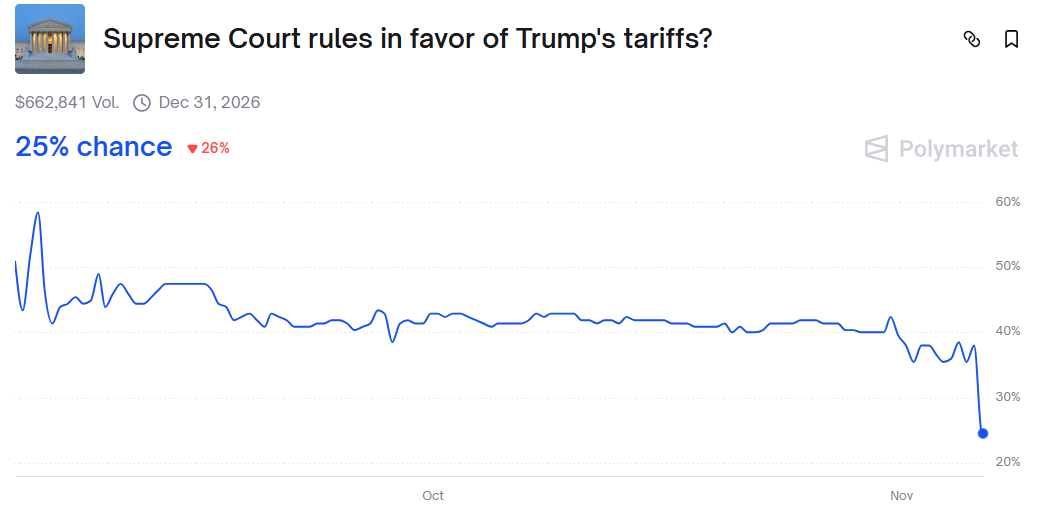 美国最高法院昨晚就川普****依据《国际紧急经济权力法》(IEEPA)课征高额关税展开辩论。保守与自由派大法官罕见立场一致,质疑该法并未授权总统征税,若放任此权力恐造成行政权扩张。市场据此押注,若关税最终被裁定违法,美国****恐需退税近千亿美元。
