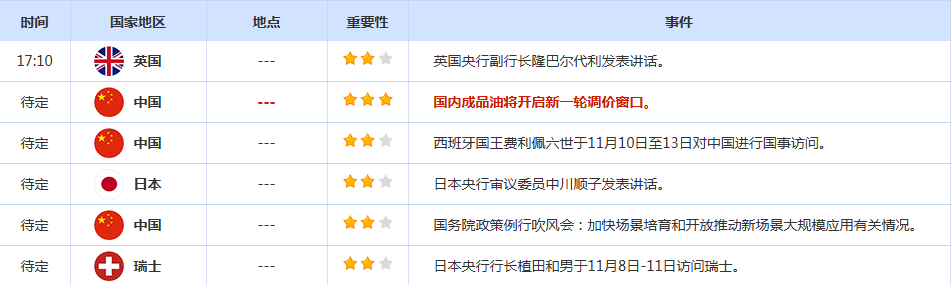基本面上,美国原油库存因进口增加和炼油活动放缓而超预期增长,不过汽油和馏分油库存的下降提供了一些支撑。同时,一份民间报告暗示美国劳动力市场在10月出现疲软迹象。来自亚洲大国的数据则显示积极信号,10月原油进口量实现环比和同比增长,需求依然稳健。