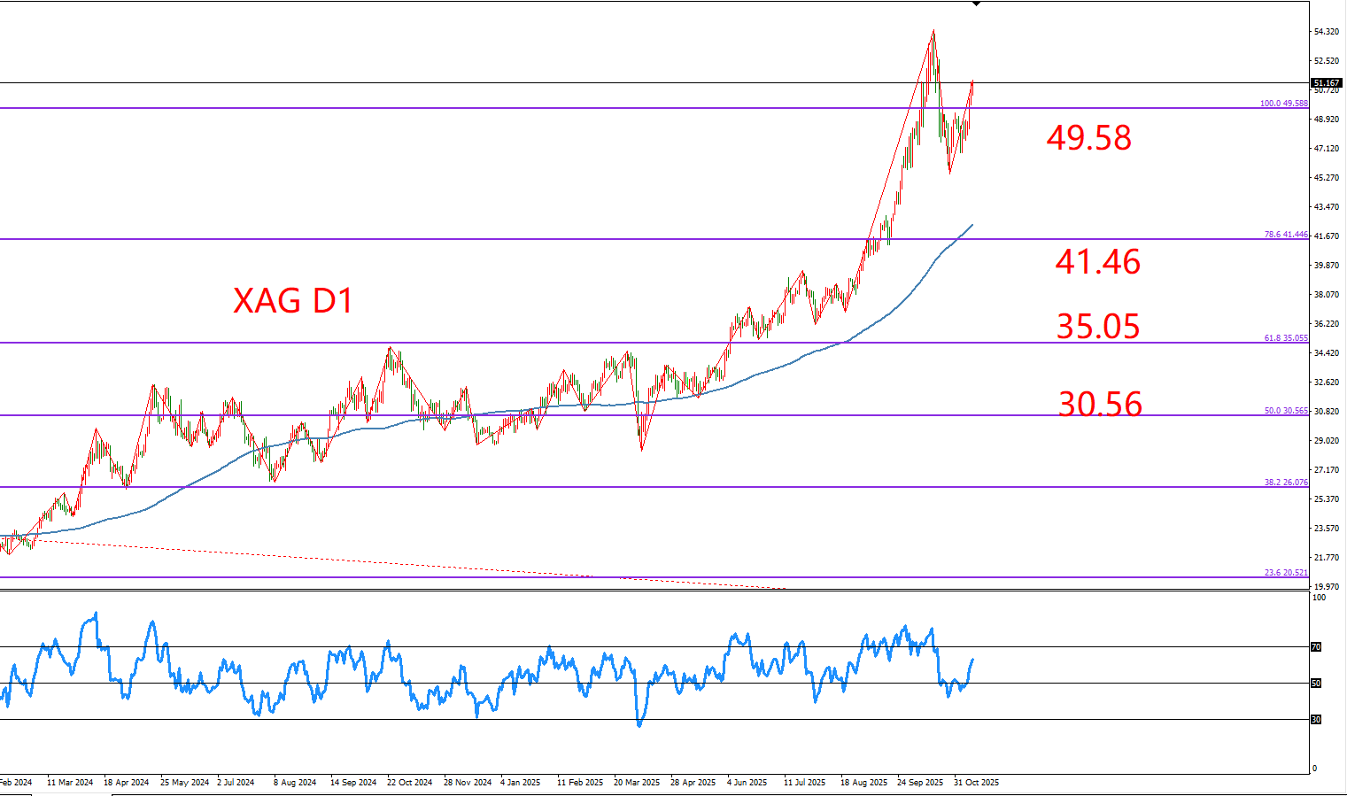 下方支撑:49.58 / 41.46 / 35.05 美元/盎司