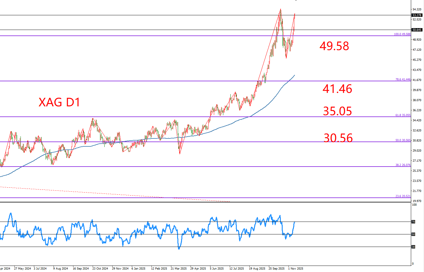下方支撑:49.58 / 41.46 / 35.05 美元/盎司
