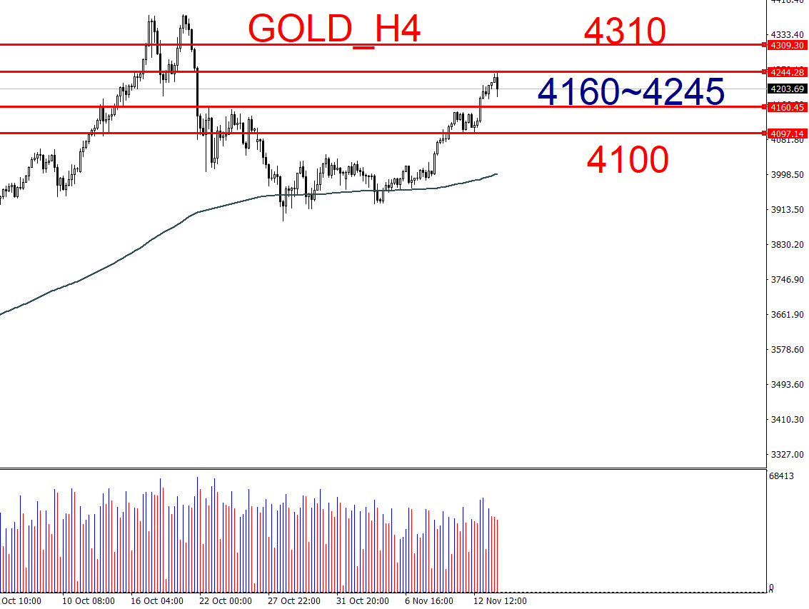 价格触及 4160并反弹: 可尝试多单,目标看向区间上沿(4245)。